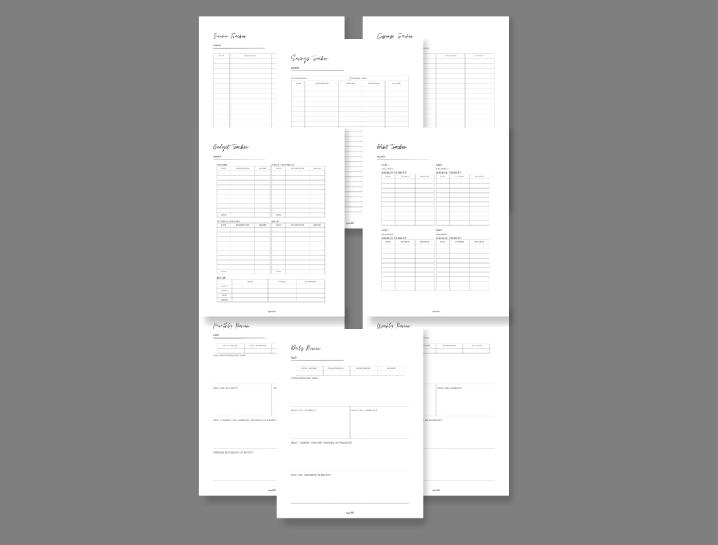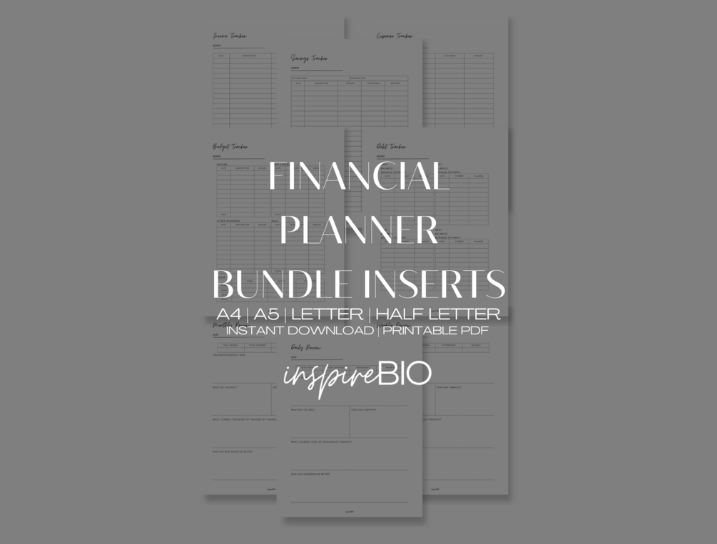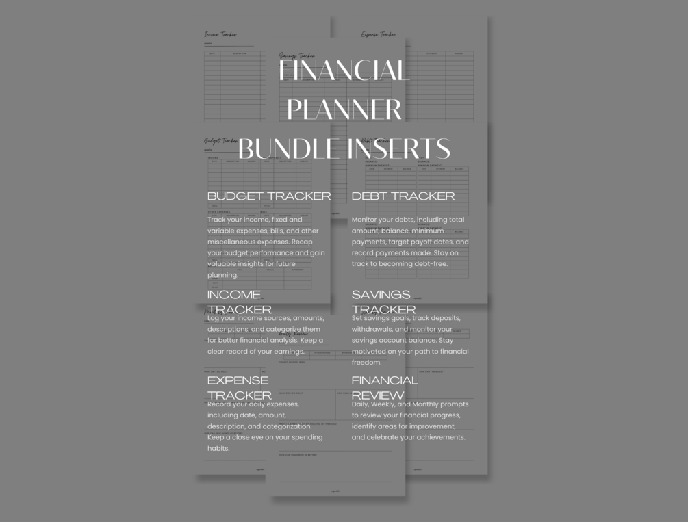 Financial Planner Bundle Inserts | Money Tracking Review Printable Inserts | Income Savings Expense Budget Debt Daily Weekly Monthly Trackers